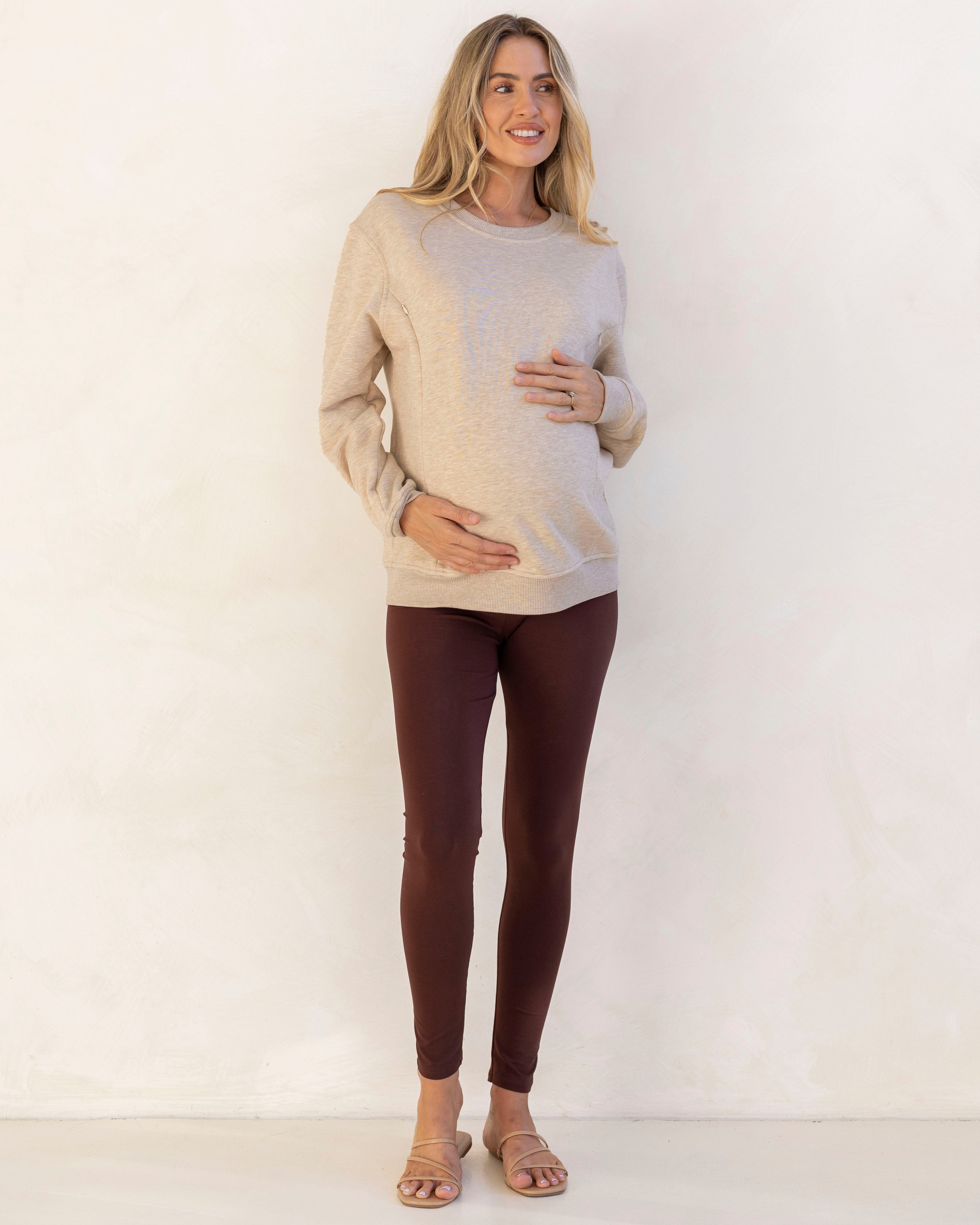 Arial Maternity Oversized Luxury Knit Nursing Jumper in Chocolate