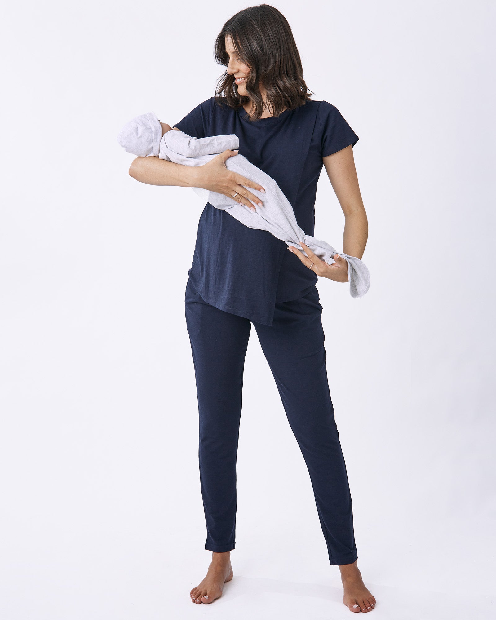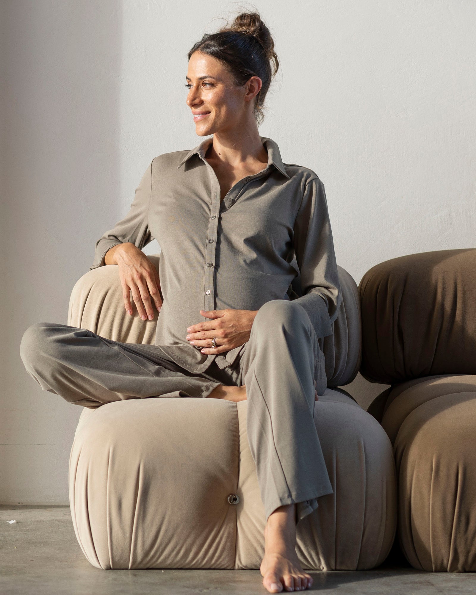 - Hospital bag must-have: Pack a comfy matching lounge set for your hospital stay. You'll appreciate the easy-to-wear pieces and relaxed silhouette during those early postpartum days.