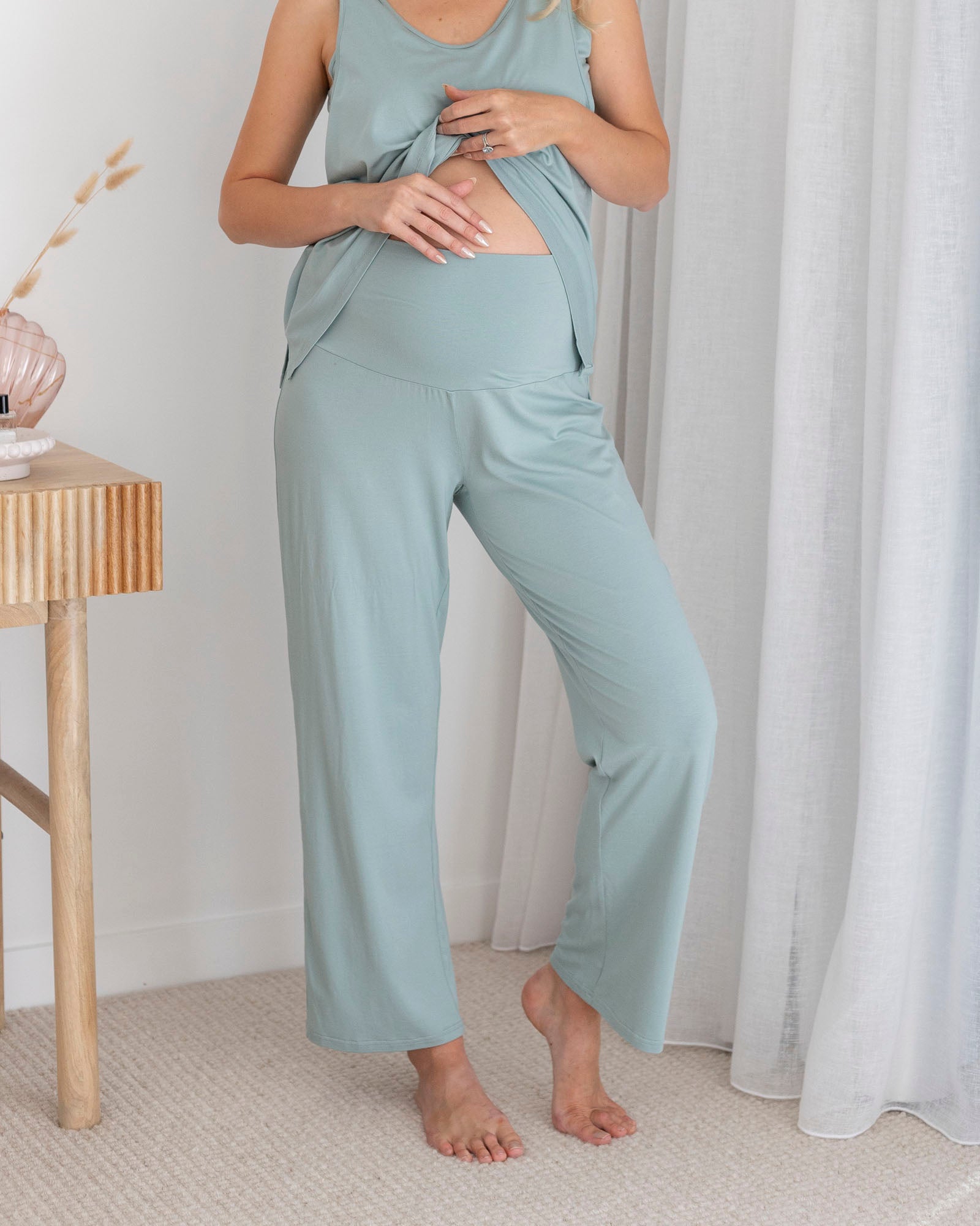 Ellie Maternity Shirred Maxi Skirt in Mint Green