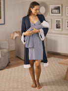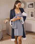 3-Piece Maternity Hospital Pack - Nightie/Robe/Baby Wrap in Navy