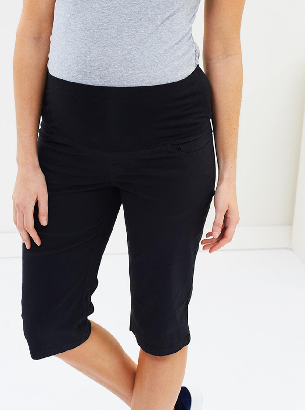 Stretchy cotton shorts with a luxuriously soft stretchy waistband that snuggles over your growing belly with plenty of room to grow as your pregnancy progresses. An easy, breezy relaxed fit shorts designed to move with you throughout the day.