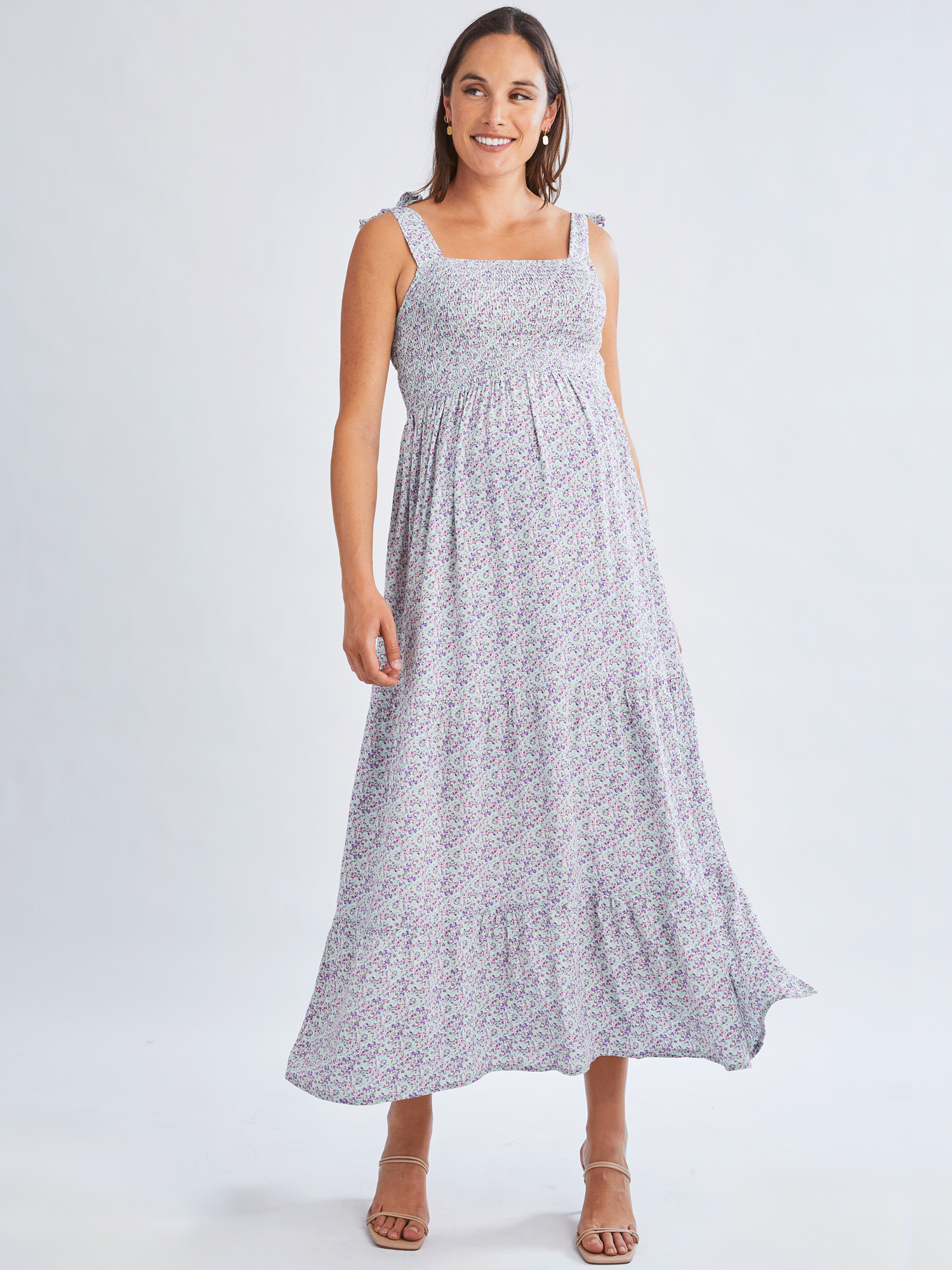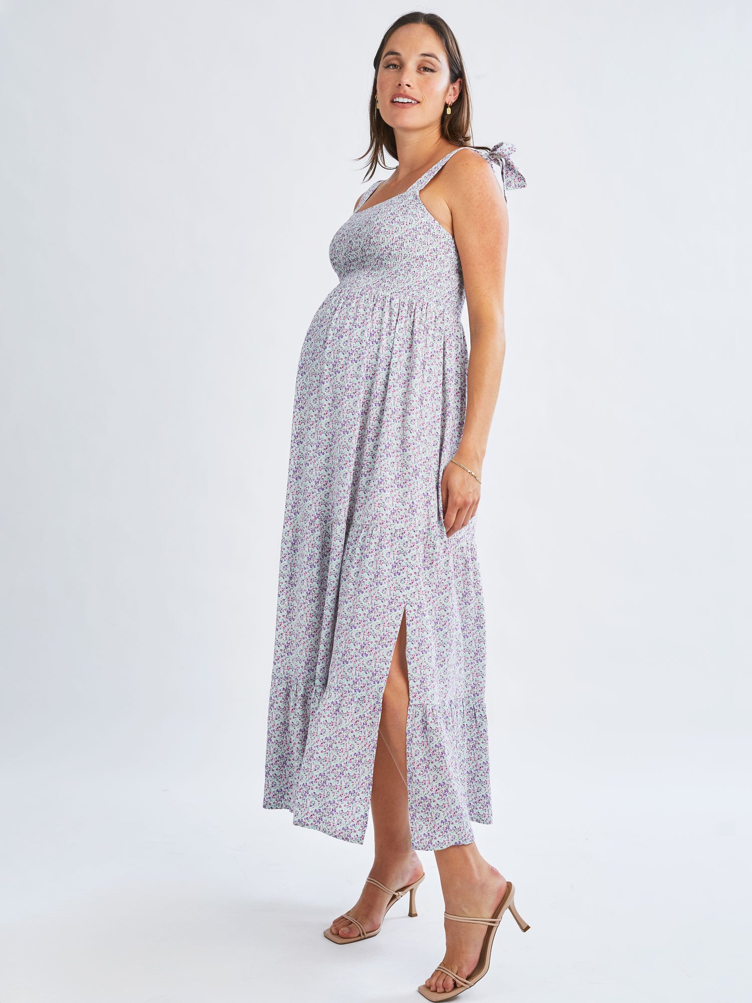 Mika Maternity Ruffle Dress in Cream Floral Silky