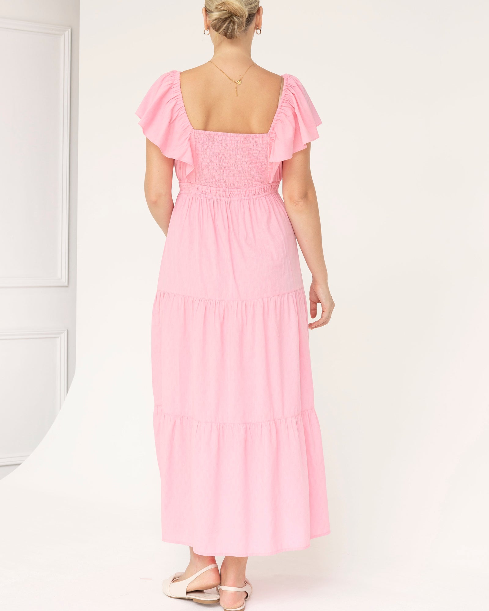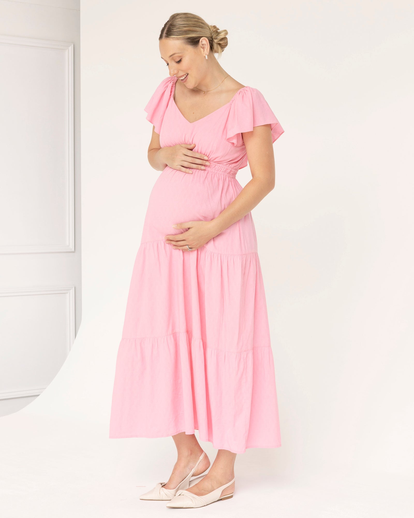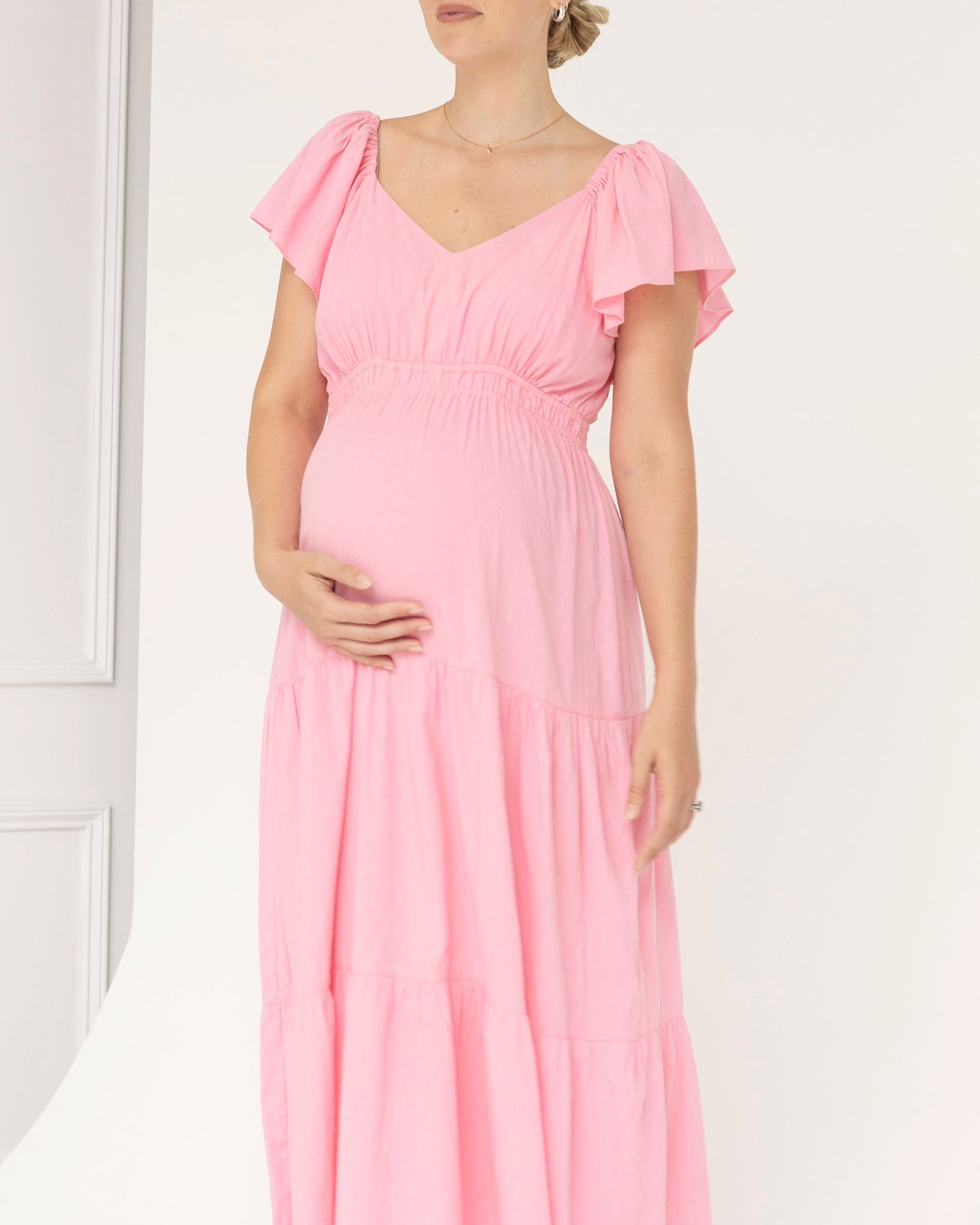 Lila Baby Shower Maternity Cotton Dress in Sugar Pink