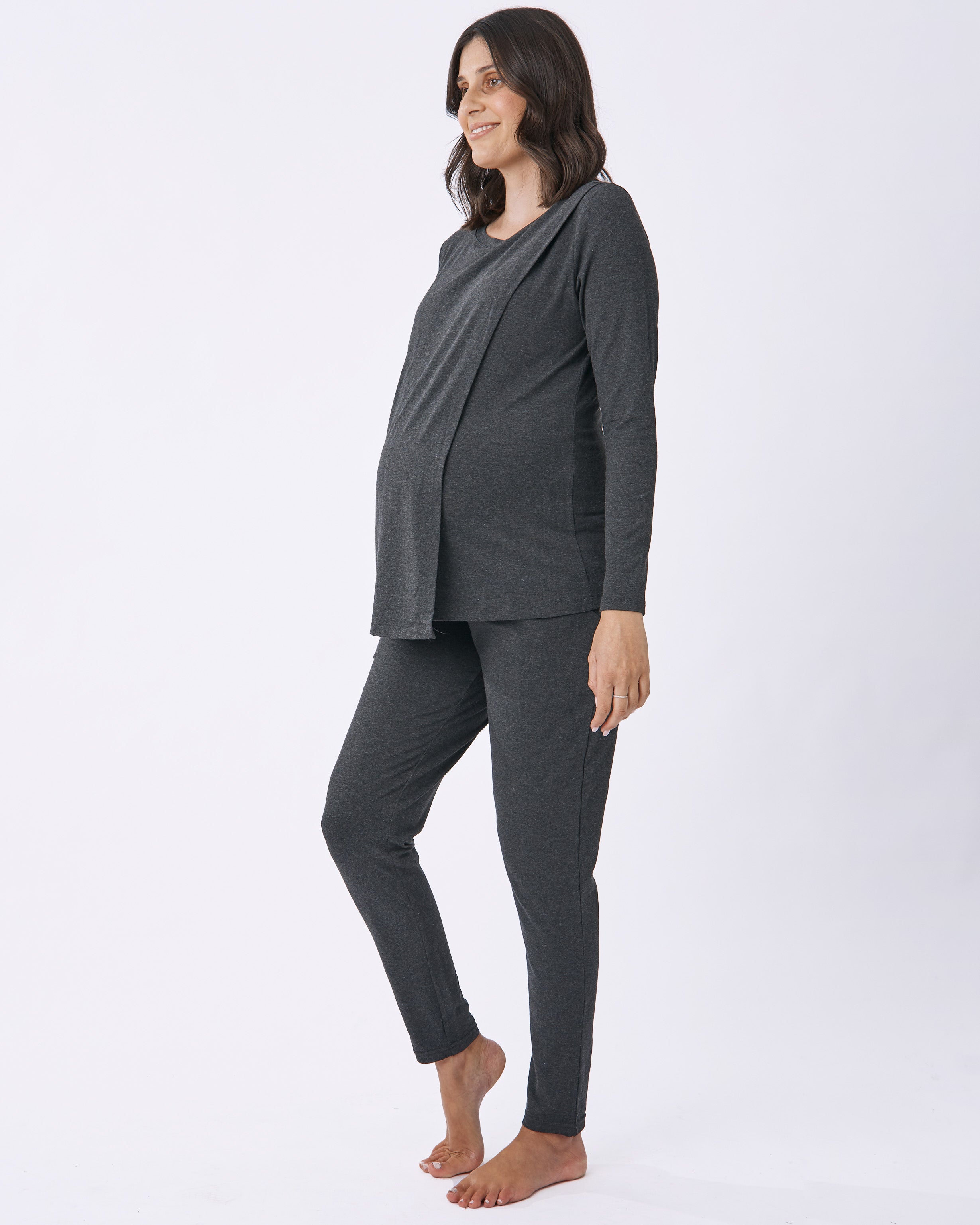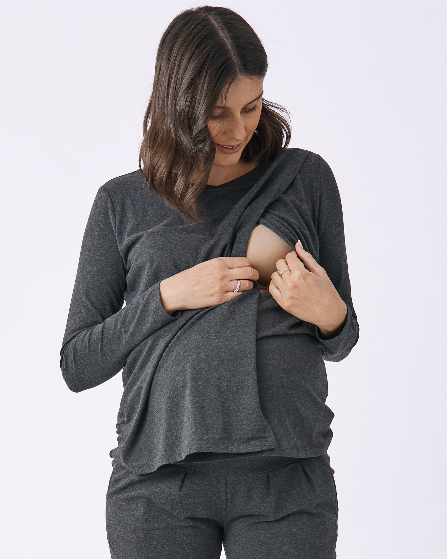 Monique Long Sleeve Nursing Petal Top - Charcoal
