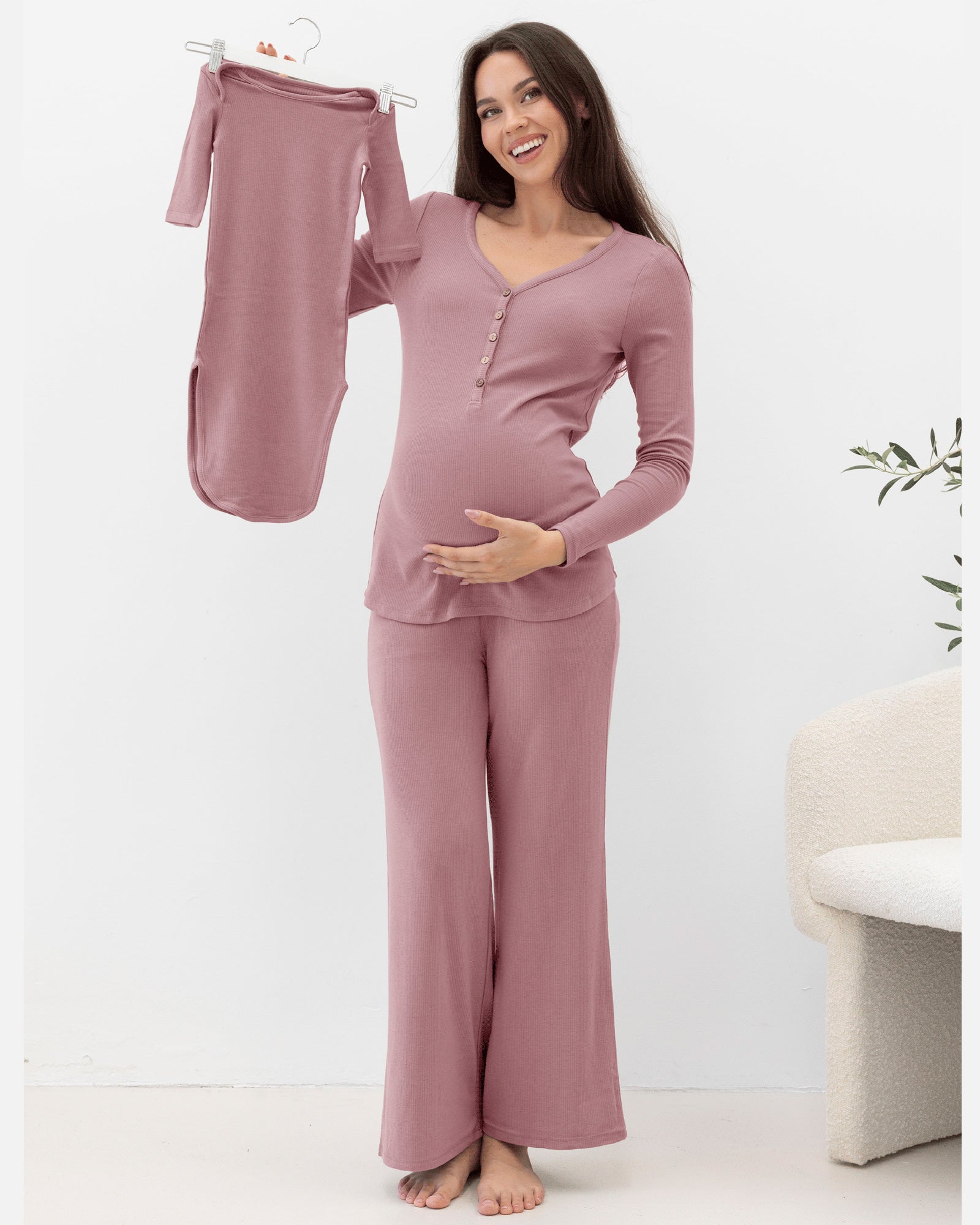 3-Piece Isabelle Maternity Sleepwear PJ set - Rose Pink