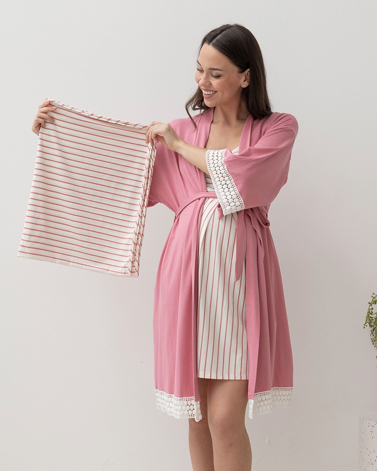 - 3 piece set with robe, striped nightie and baby wrap