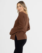Arial Maternity Oversized Luxury Knit Nursing Jumper in Chocolate