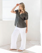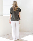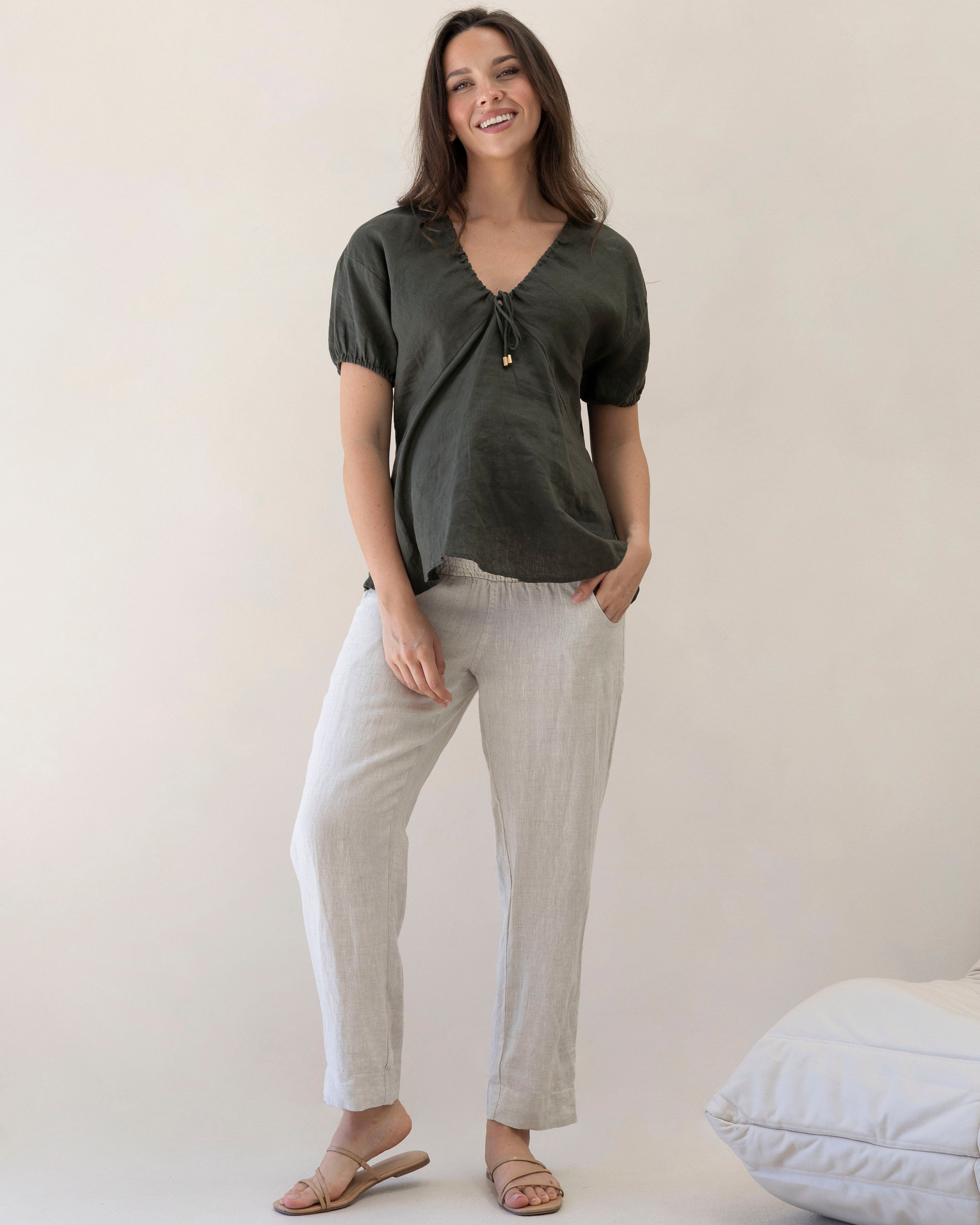 Brigitte Maternity Linen Blouse Top - Khaki Green