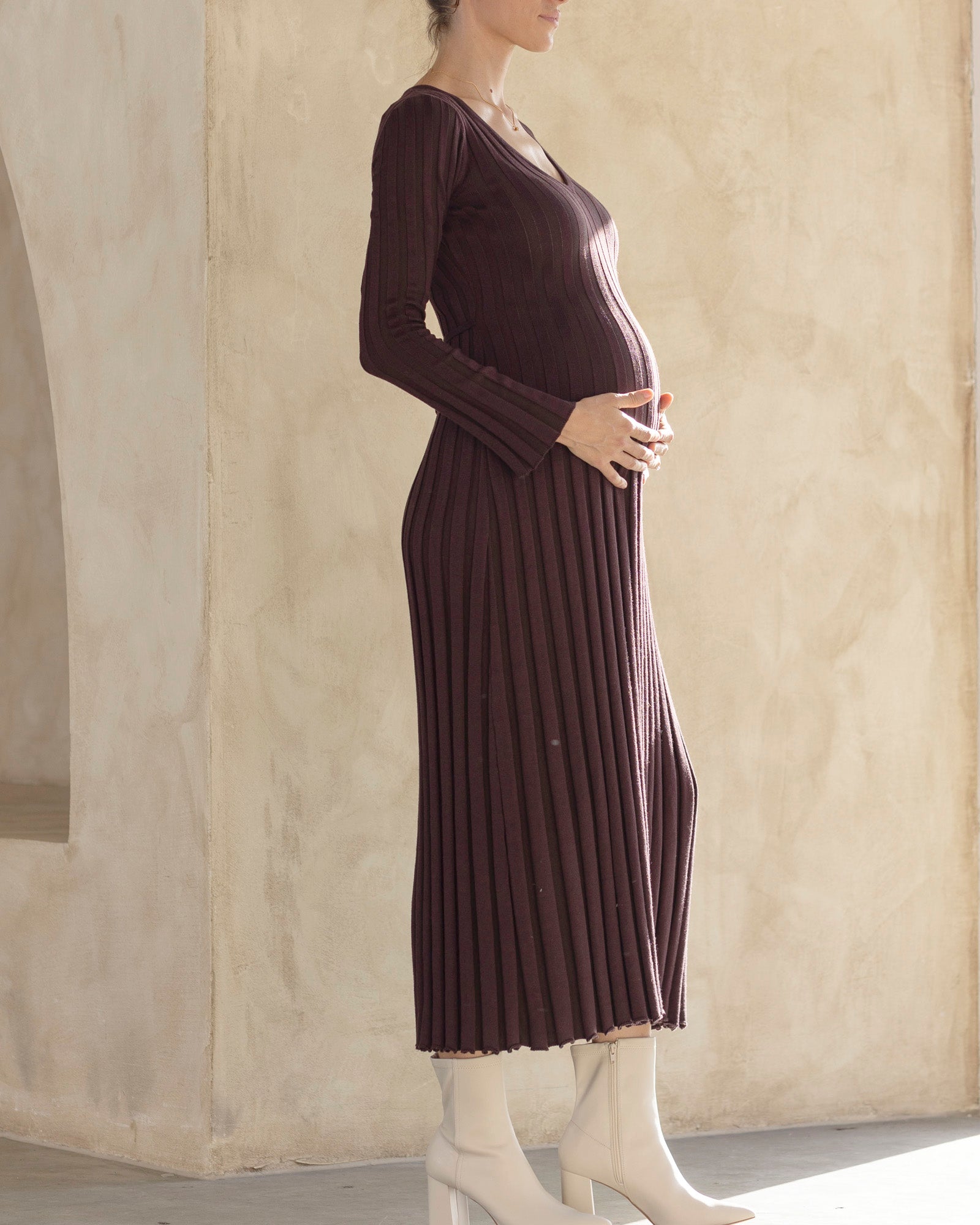 Victoire Maternity Knit Bodycon Dress in Dark Brown