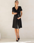 Chic and comfortable, the Colette Maternity Dress is your go-to piece for effortless workwear style. Crafted from a soft yet structured ponte fabric, it features a flattering V neckline, waist gathers, and a classic knee-length cut โ making it ideal for the office or any smart setting.