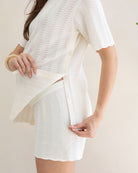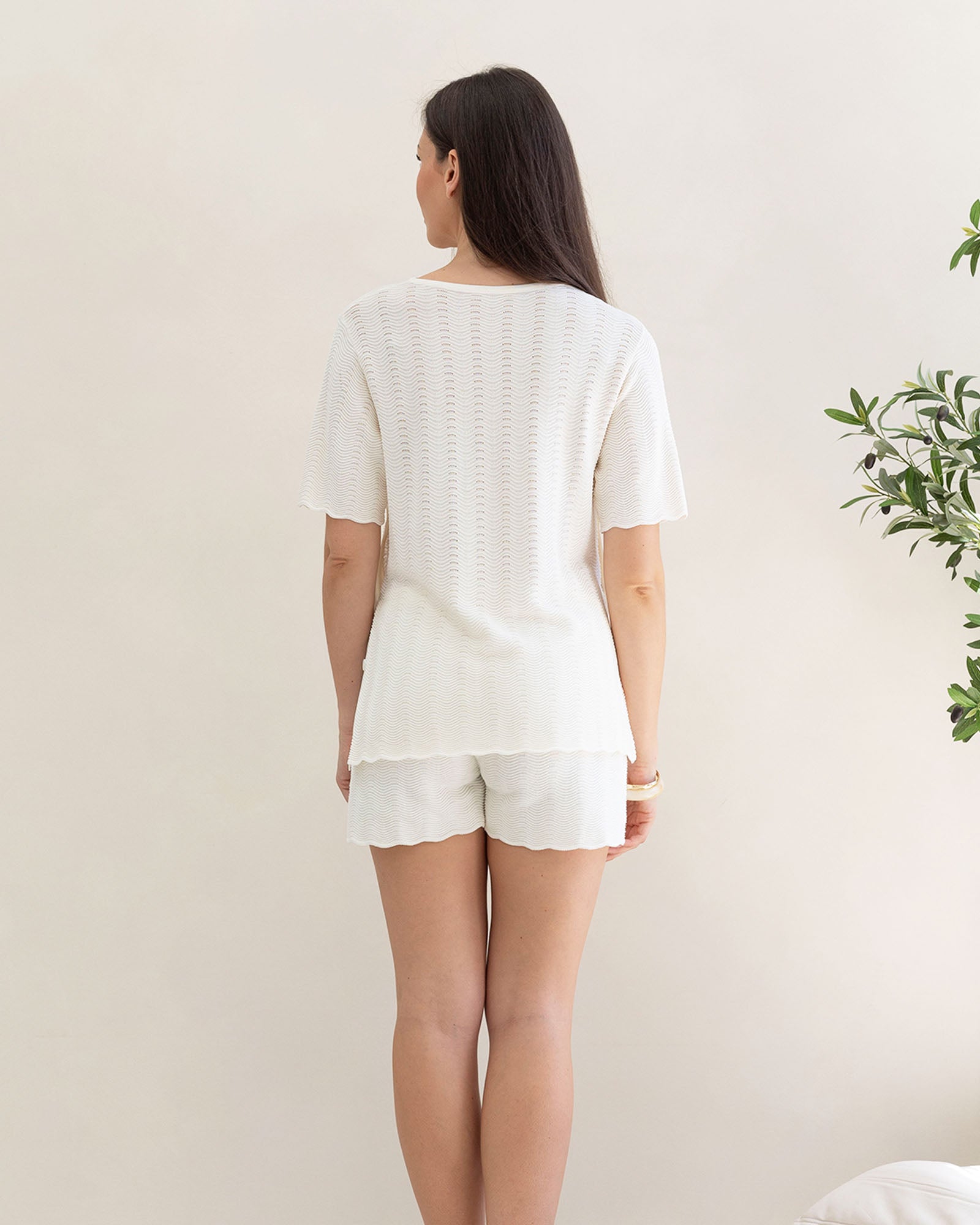 Delmy 2-Piece White Nursing Knit Top & Matching Short Set