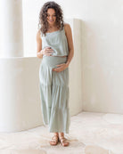 Ellie Maternity Shirred Maxi Skirt in Mint Green