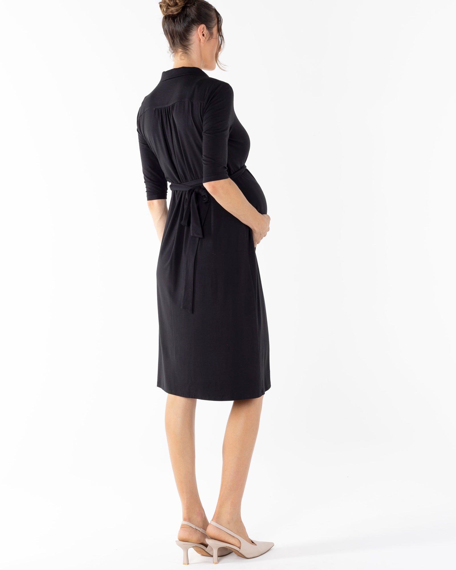 Effortlessly beautiful and practical wrap dress that is suitable for pregnancy and nursing. This work dress can be dressed up or down as it's simple, chic, and timeless. Extremely comfortable, and crafted from a stretchy material that isn't see-through. The cut of this wrap dress is flattering for all body shapes.