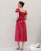 Fabia Reversible Tie Maternity Cotton Dress In Noel Red