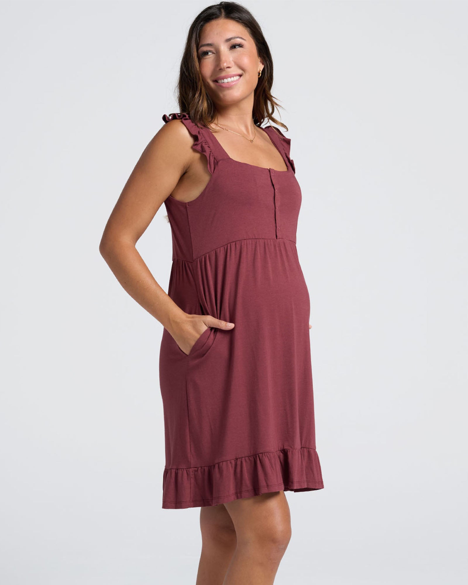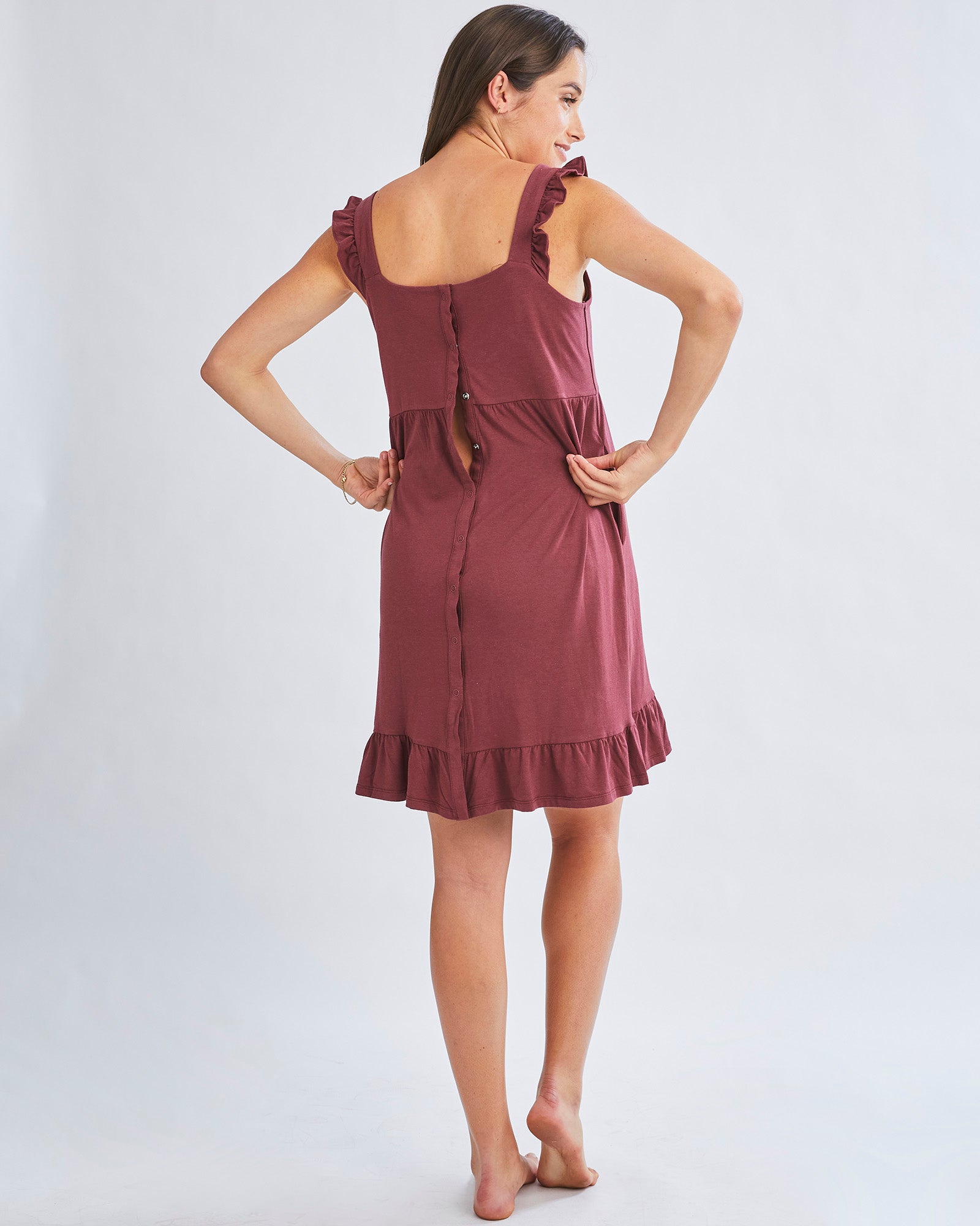 Grace Hospital Birthing Gown/Night Dress with Nursing Access - Burgundy