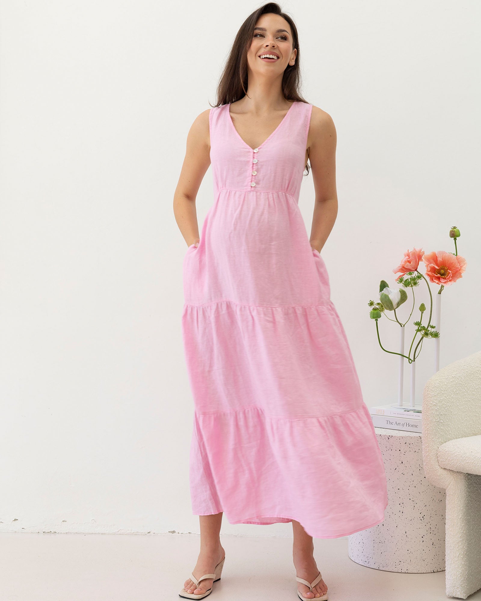 Make the most of this summer with our Linen Maternity Dress. Designed for your comfort not only when you're out in the sun, but also with the ease of access for breastfeeding.