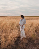 Celebrate your special moments in style with this stunning white lace maxi dress, perfect for maternity photoshoots or baby showers. Crafted from soft, breathable cotton and featuring a delicate sheer scalloped lace hem, this dress exudes romance and elegance.