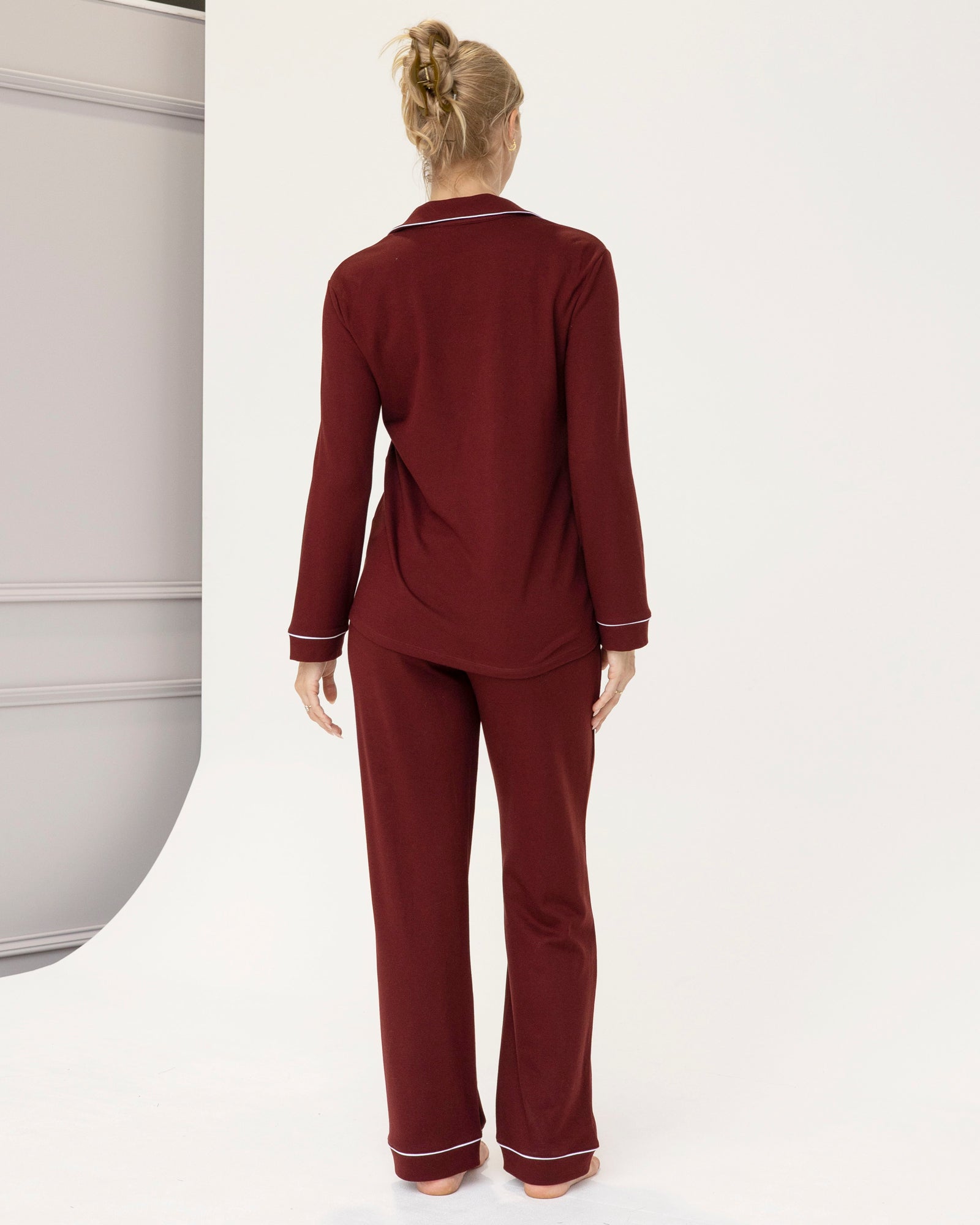Larah Maternity Long Sleeve Winter Pyjama Set in Burgundy