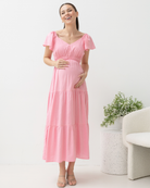 Embrace Elegance and Comfort with the Lila Baby Shower Maternity Dress in Candy Pink