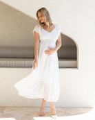 Lila Baby Shower Maternity Sundress in White