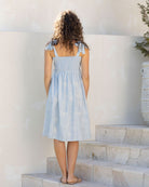 Lily Shoulder Tie Maternity Embroidery Dress- Blue