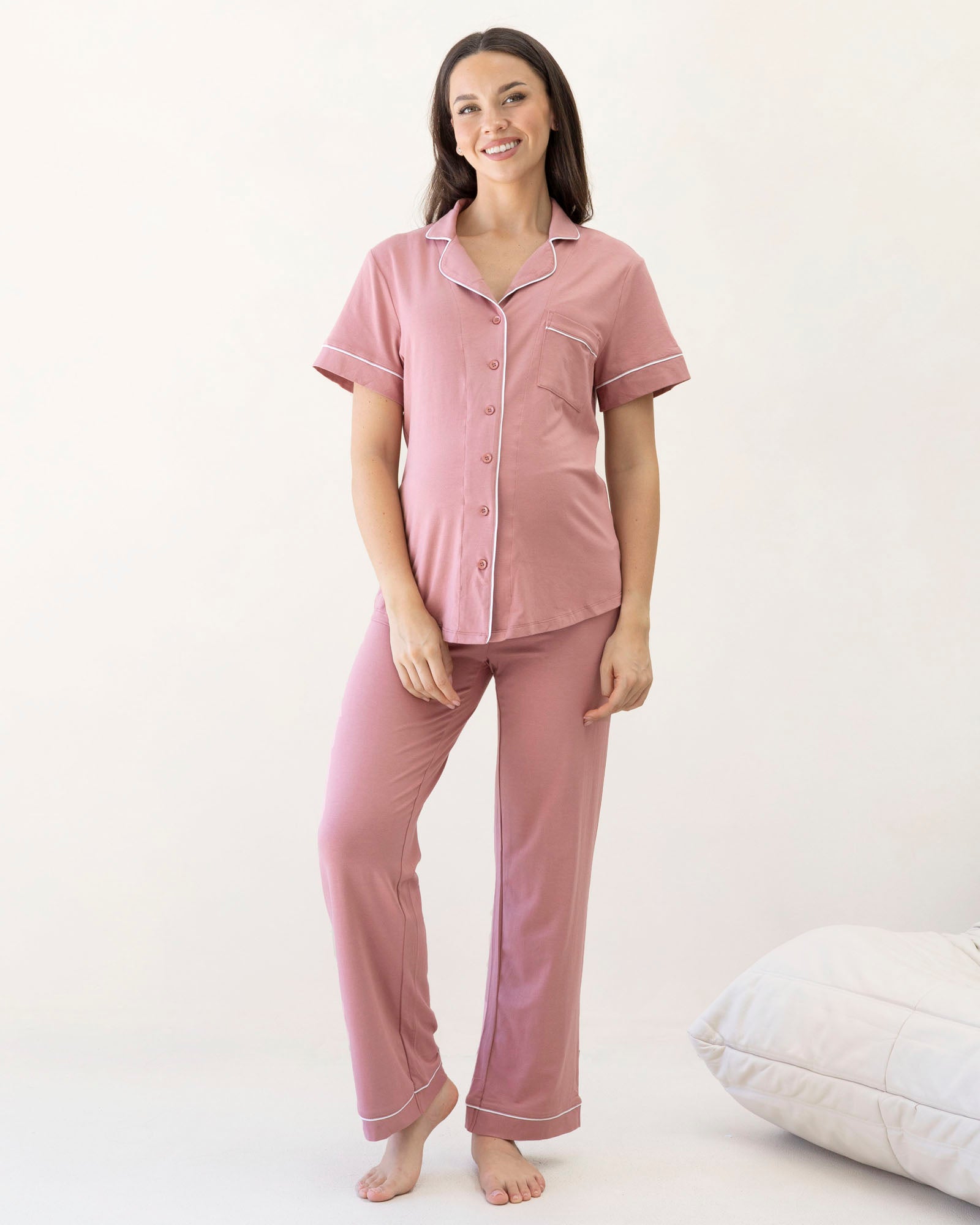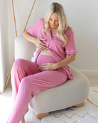 Maternity and Nursing Button Front Pyjama Set in Pink