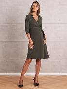 Maternity Classic Wrap Feeding Dress in Olive Green