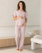 Ellen Maternity Cotton Waffle Lounge Pants in Blush