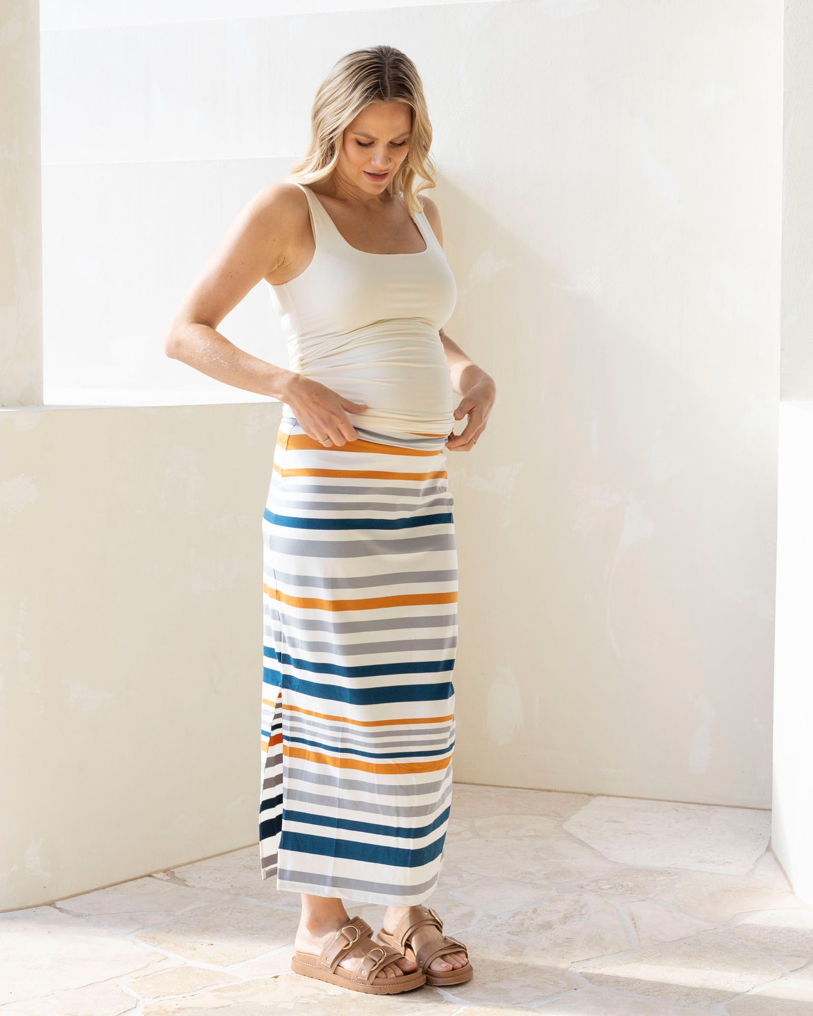 This Maternity Deluxe Modal Tank Top is a wardrobe essential that pairs beautifully with anything—from casual denim to our matching maternity striped skirt. Style it with sneakers for an easy weekend look or layer it under your favourite outerwear for all-day comfort.