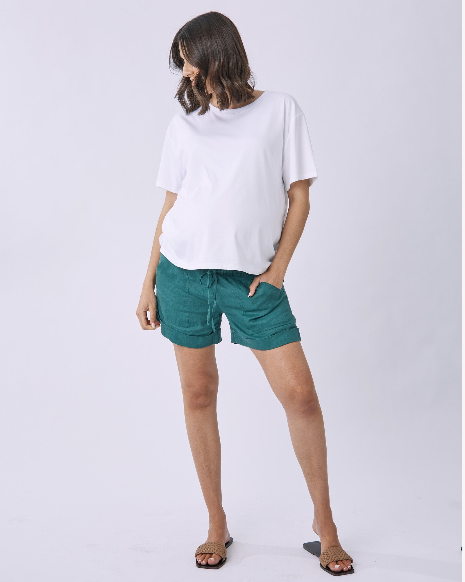 Maternity Linen Shorts In Vibrant Green