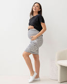 This fitted maternity skirt in multi stripes is designed for extra comfort, excellent for maternity and the growing pregnancy bump and beyond. Style it with a matching colour loose top to wear from day to night.