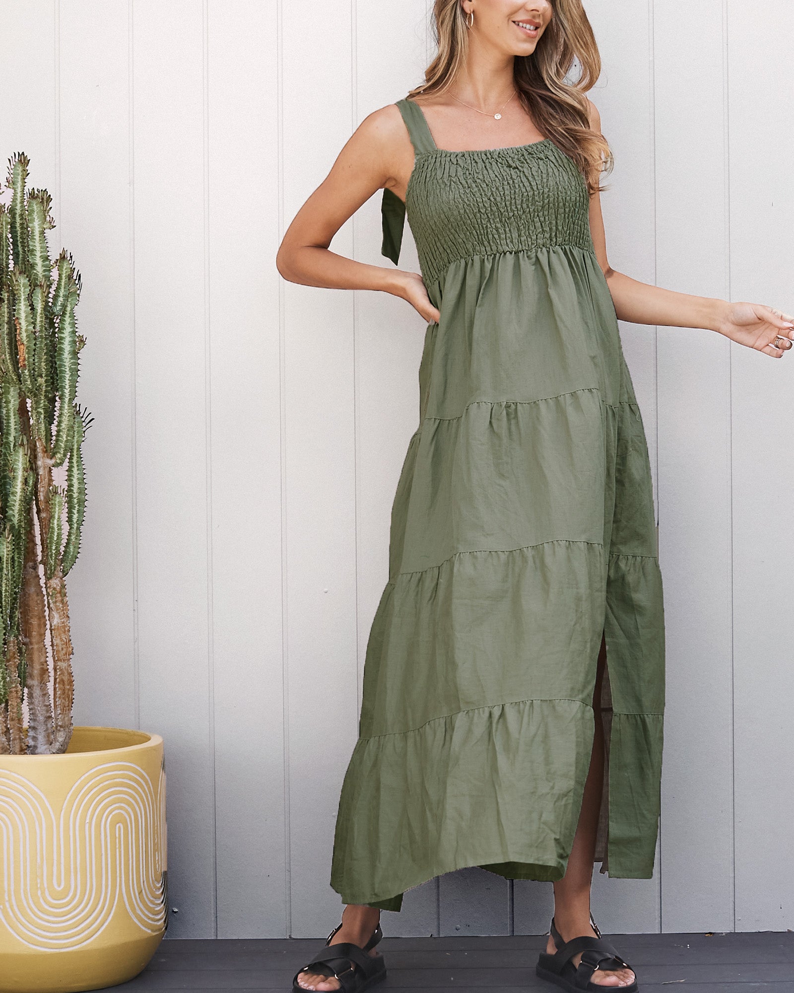 Maternity Lilliana Linen Dress in Olive Green