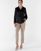 Taylor Black Maternity/Nursing Satin Button Down Blouse Fun and fashionable in Angel Maternity Work Wear Collection.