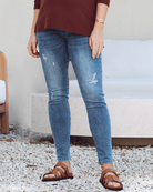 - Distressed maternity jeans