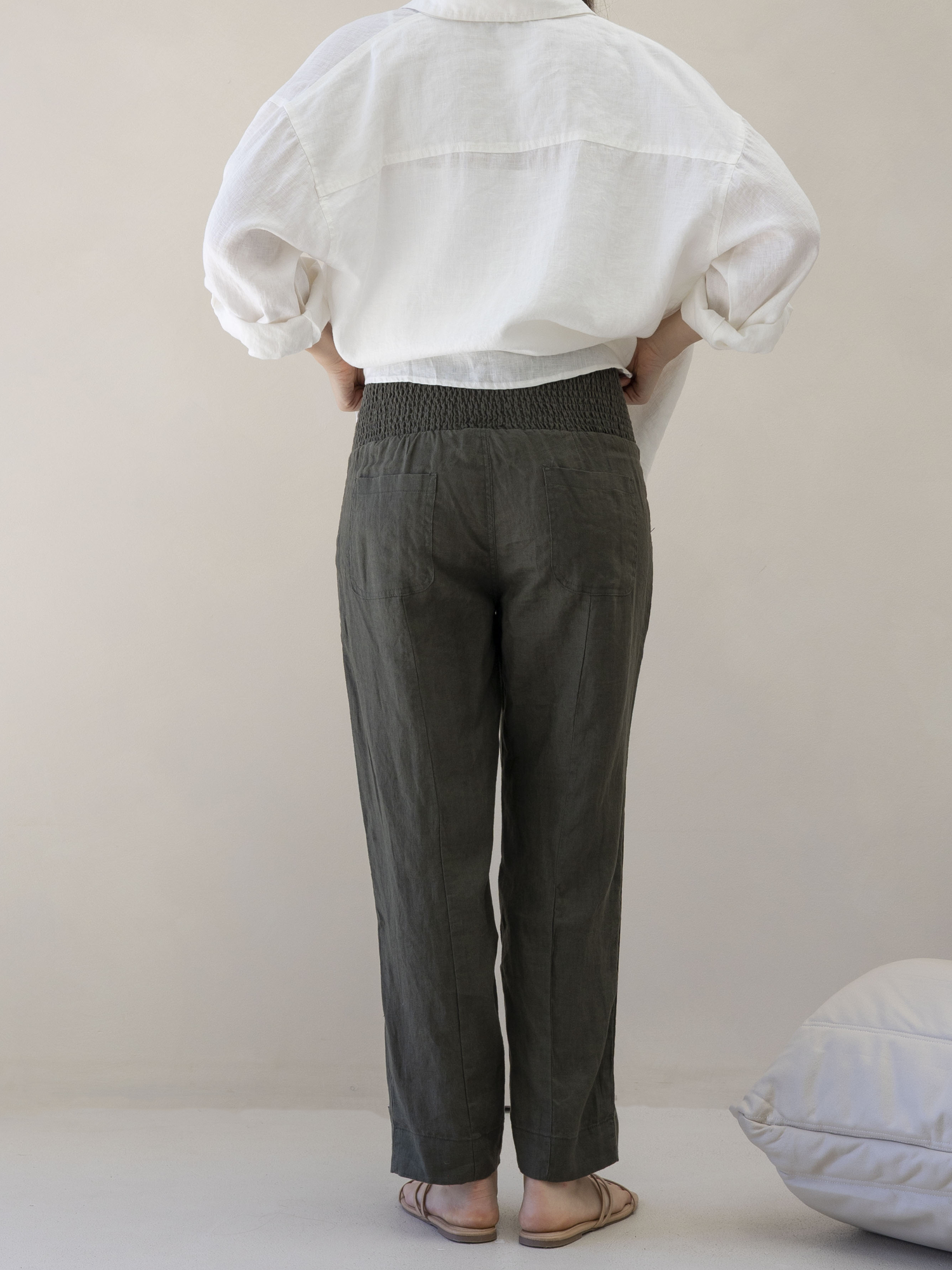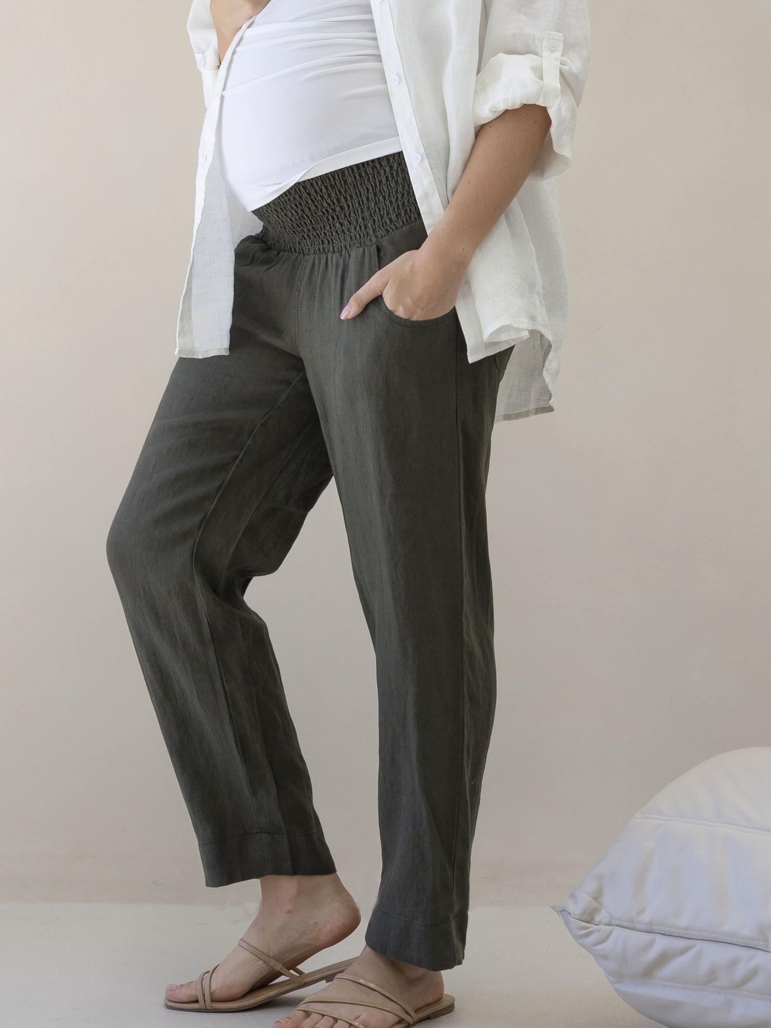 Pamela Maternity Linen Tailor Pants in Khaki