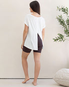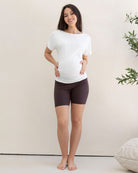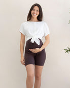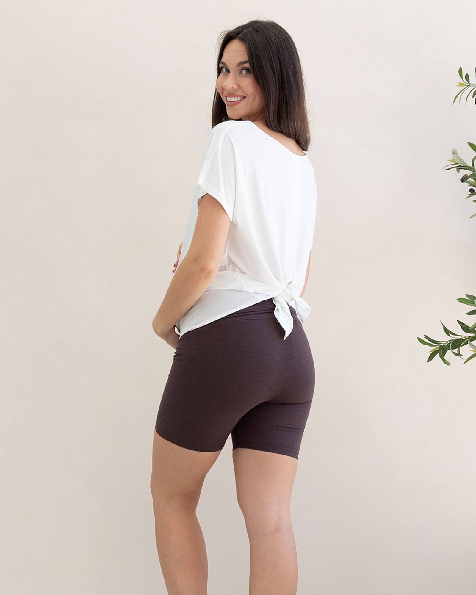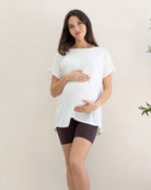This super comfy maternity t-shirt is perfect for spring and summer. Style it tied up with a skirt, shorts or pants or wear it loose for a more casual look. Made as a reversible T-shirt to wear whichever way you like.