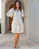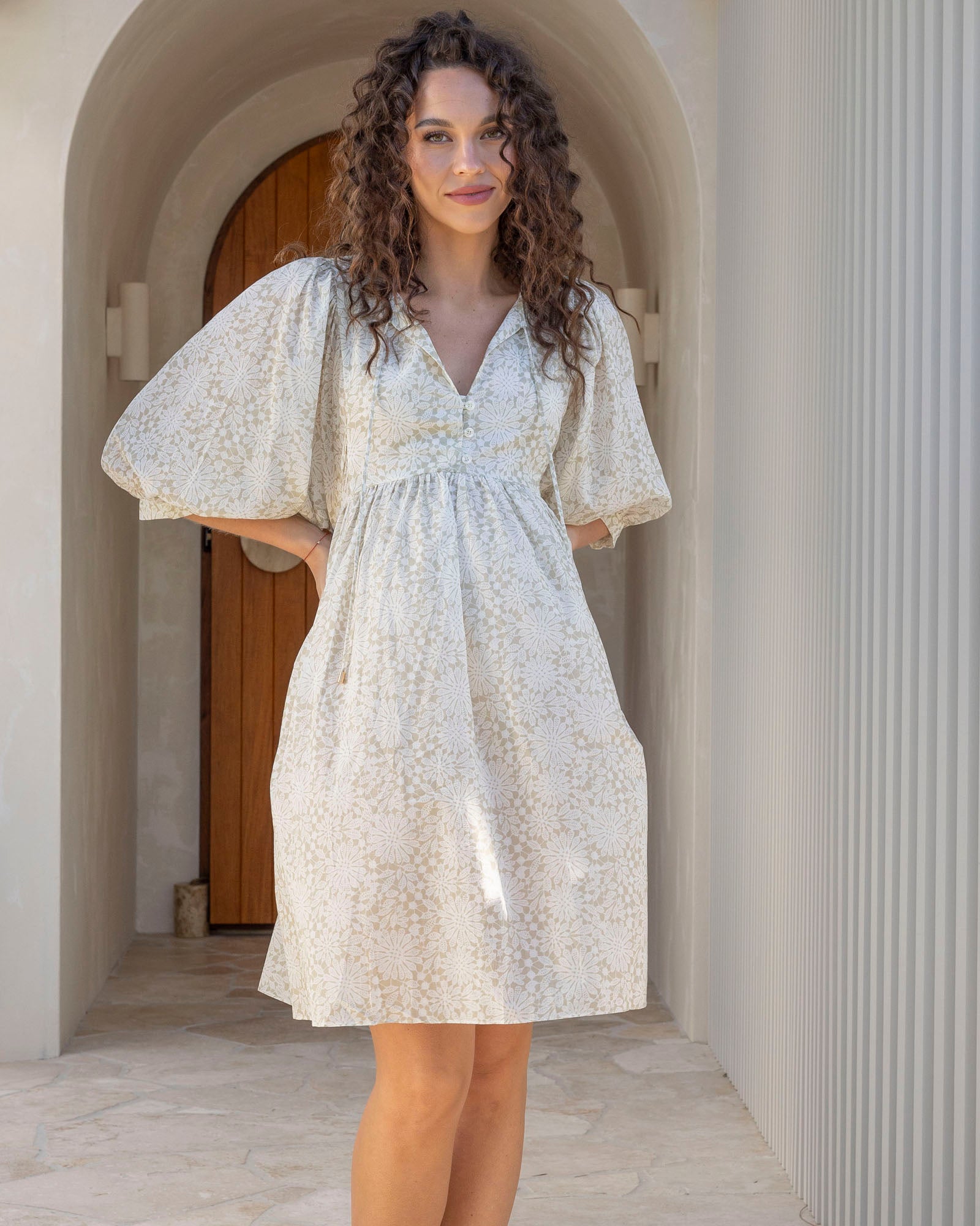 Embrace effortless charm with our Romantic Daisy Cotton Day Dress, crafted from soft, breathable 100% cotton. This lightweight and flowy dress features a delicate daisy print, front button closure, and a refined mandarin neckline. The romantic bell sleeves and high-waist seam flatter your silhouette, while the attached side tie allows you to adjust the fit for a relaxed yet feminine shape. A perfect knee-length style for warm days, brunch dates, or weekend strolls.