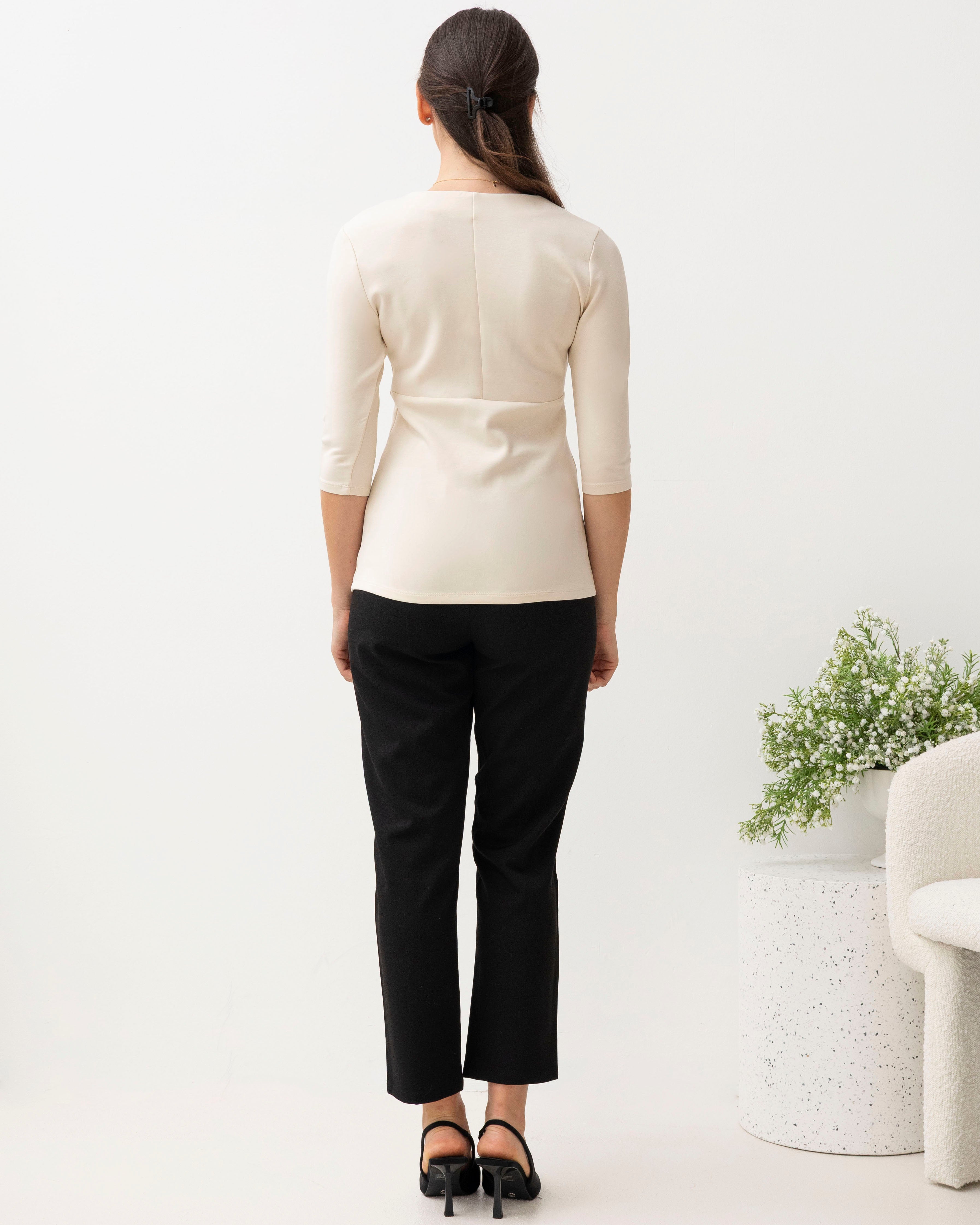 Soft Ponte Half Sleeve Maternity V-Neck Work Top – Light Beige