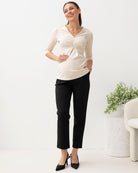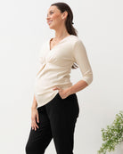 Jenni Half Sleeve Maternity V-Neck Work Top in Beige