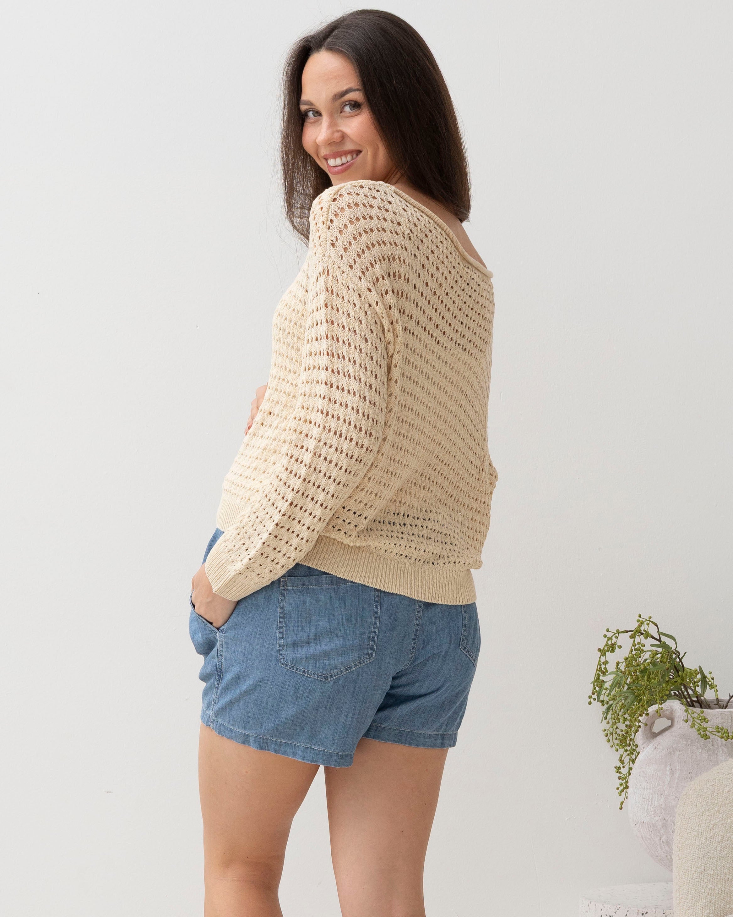 The Valerie Maternity Crochet is the perfect piece for a stylish and comfortable pregnancy. The soft, stretchy knit fabric provides a flattering fit for your growing belly, and the classic colour is perfect for any occasion.