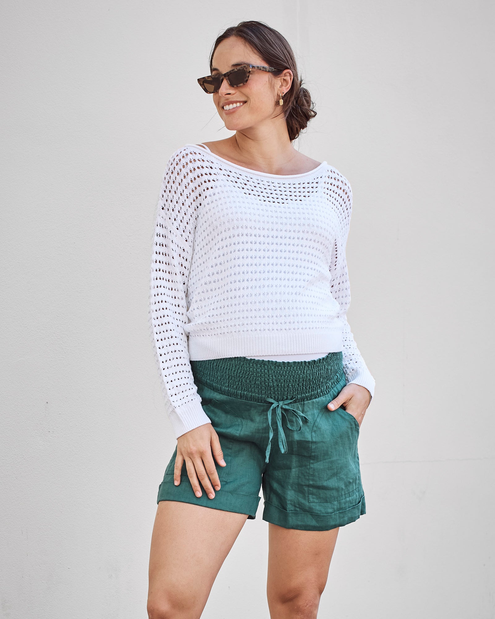 Valerie Maternity Crochet is the perfect piece for a stylish and comfortable pregnancy. The soft, stretchy knit fabric provides a flattering fit for your growing belly, and the classic white colour is perfect for any occasion.