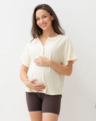 Zara Ribbed Short Sleeve Maternity Top In Almond